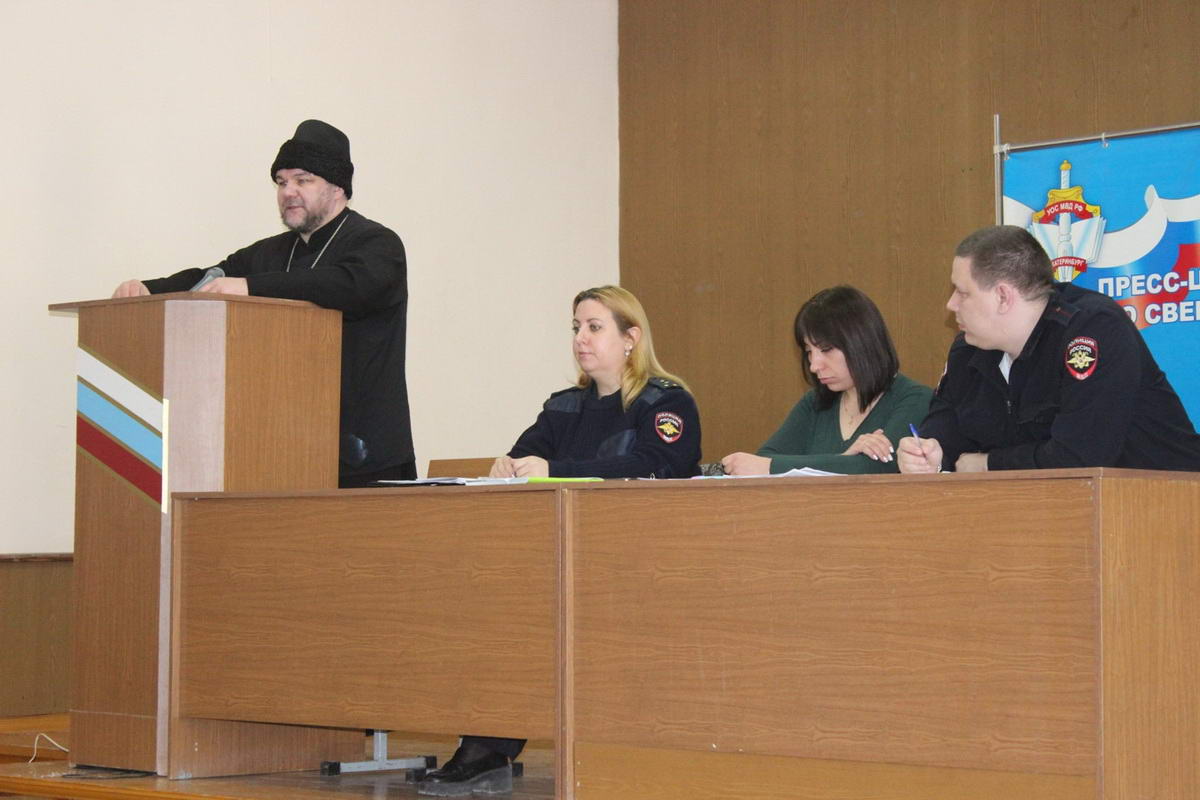 На тему: «23 февраля День защитника Отечества – День воинской славы России. История и традиции праздника» выступил перед личным составом Алапаевского отдела полиции заместитель Председателя Общественного совета, руководитель отдела по Миссионерскому служению Алапаевской епархии иеромонах Серафим (Шанин).