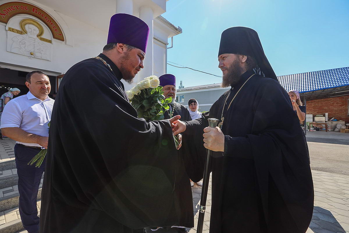 По окончании Литургии со словами поздравления к правящему архиерею обратились: епископ Алапаевский и Ирбитский Сергий, благочинный Приморско-Ахтарского церковного округа протоиерей Иоанн Феер, председатель Ейского районного Совета Олег Вяткин, глава Ейска Денис Квитовский. Епископ Серафим поблагодарил за поздравления и обратился к присутствующим с архипастырским словом.