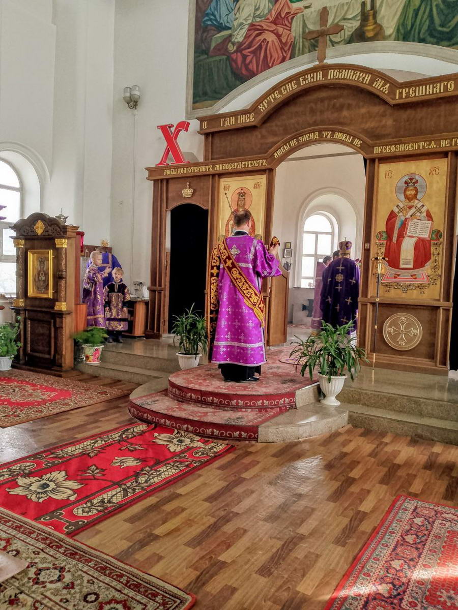 За богослужением было прочитано Евангелие Великого Вторника, а также вознесены особые прошения и молитва о мире на Святой Руси.