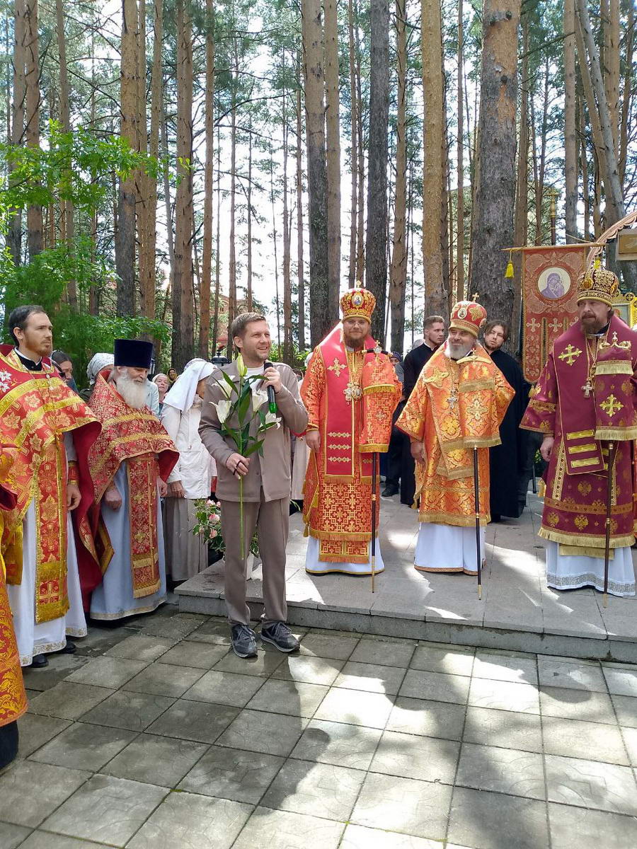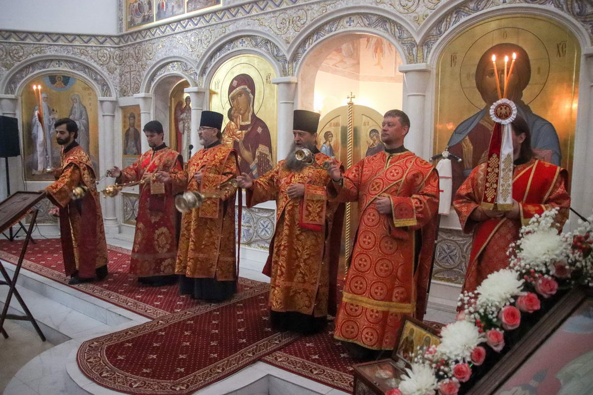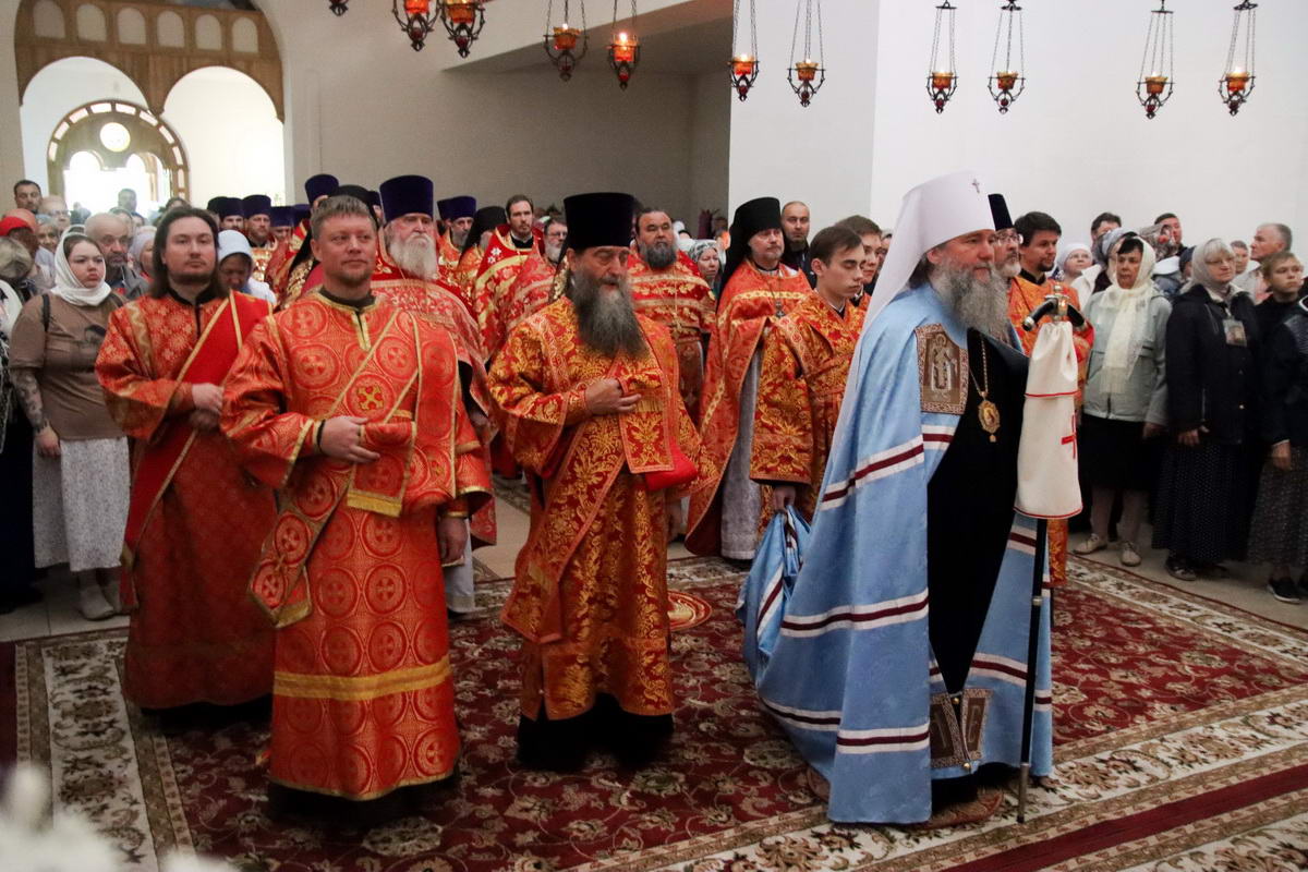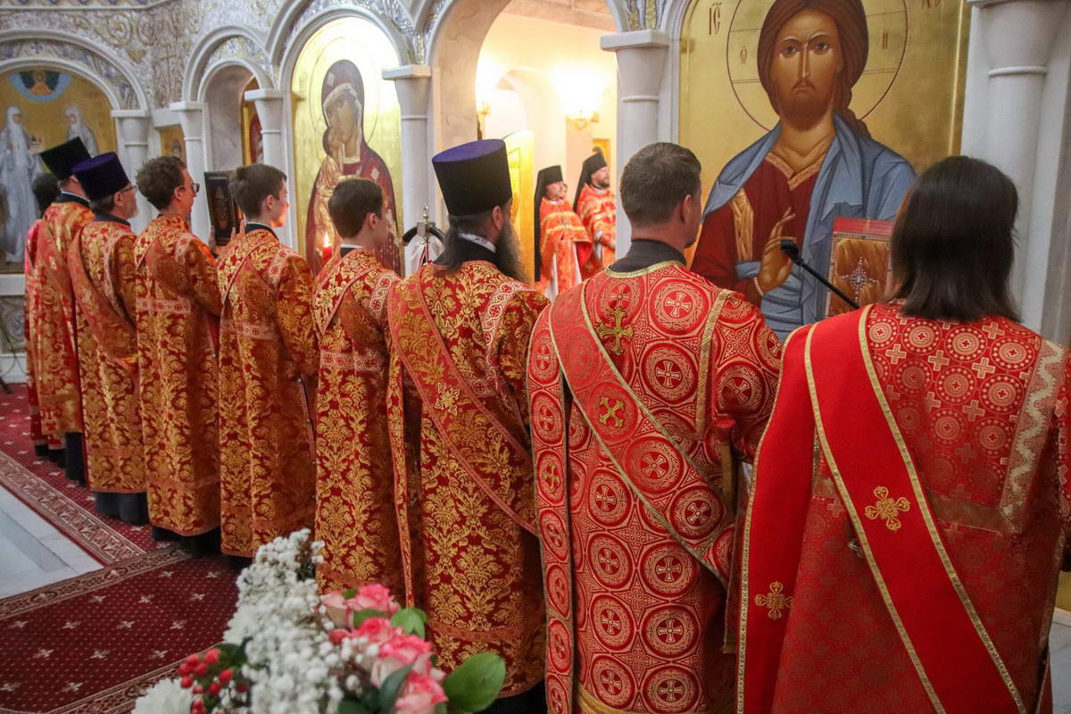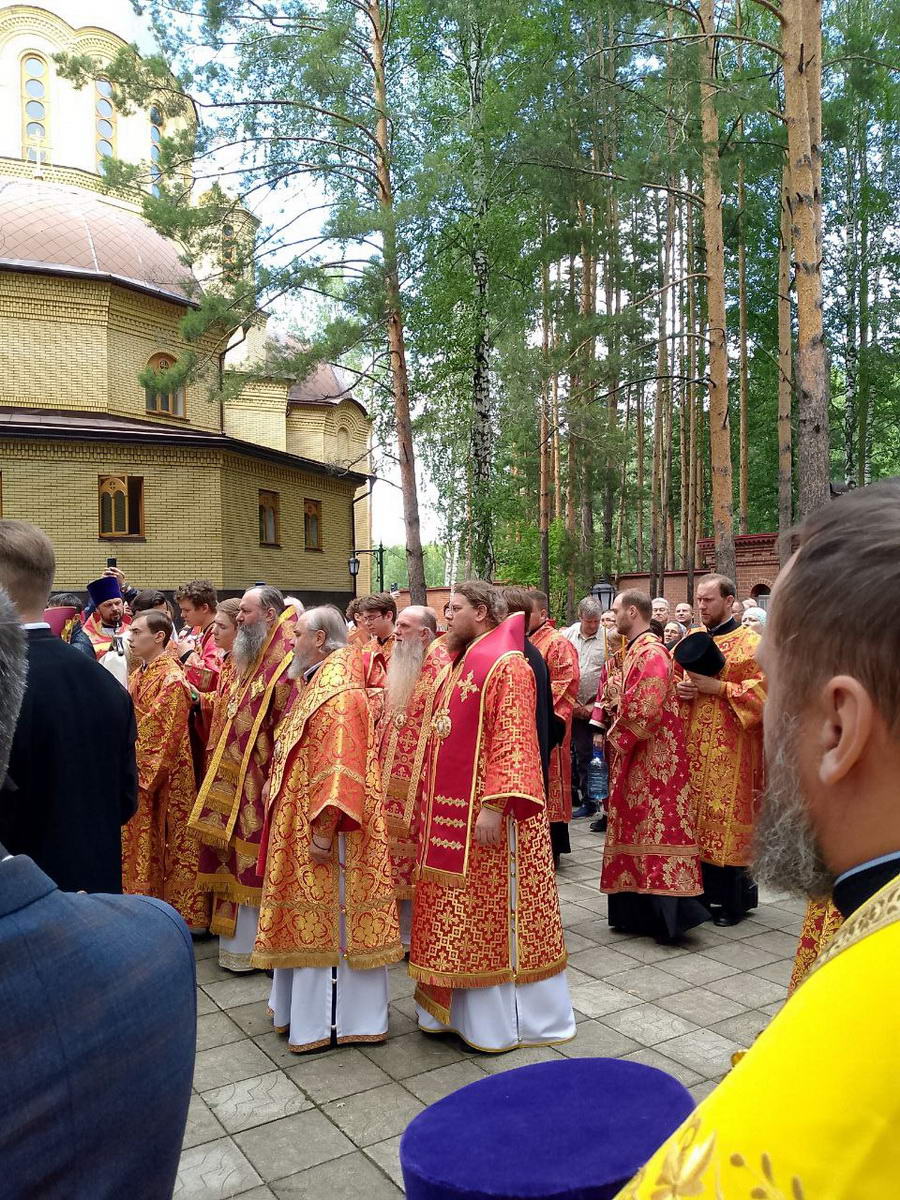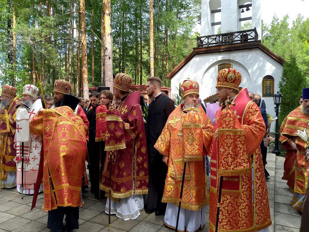 Богослужение возглавил митрополит Екатеринбургский и Верхотурский Евгений, которому сослужил митрополит Челябинский и Миасский Алексий, митрополит Волгоградский и Камышинский Феодор, епископ Нижнетагильский и Невьянский Феодосий, епископ Серовский и Краснотурьинский Феогност, епископ Каменский и Камышловский Мефодий, епископ Алапаевский и Ирбитский Сергий, а также секретарь Екатеринбургской епархии митрофорный протоиерей Николай Ладюк, настоятель обители игумен Моисей (Пилатс) и многочисленное духовенство Екатеринбургской митрополии.