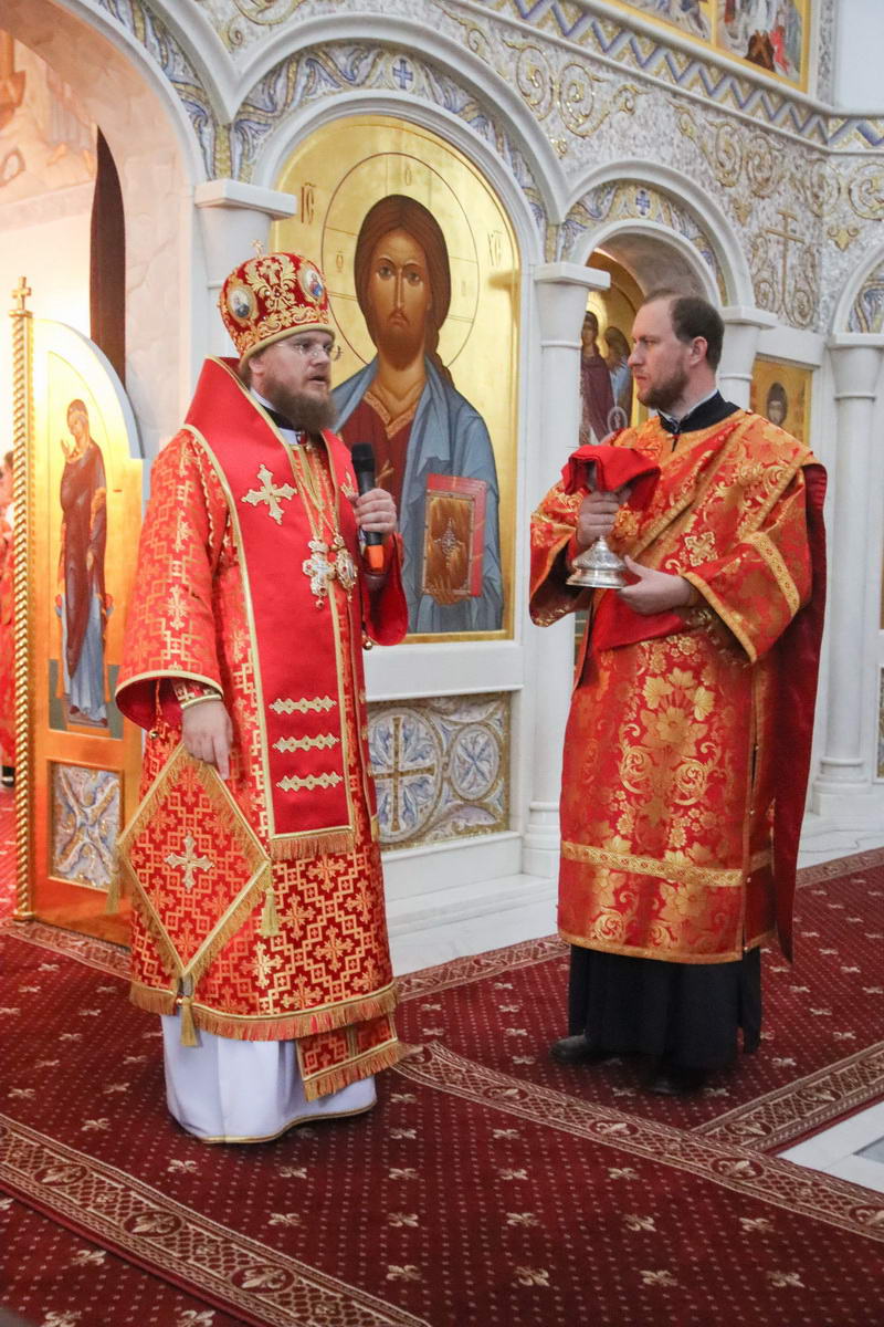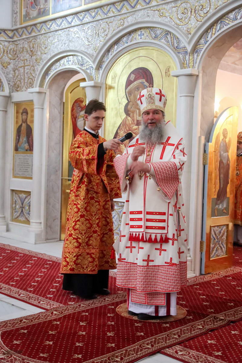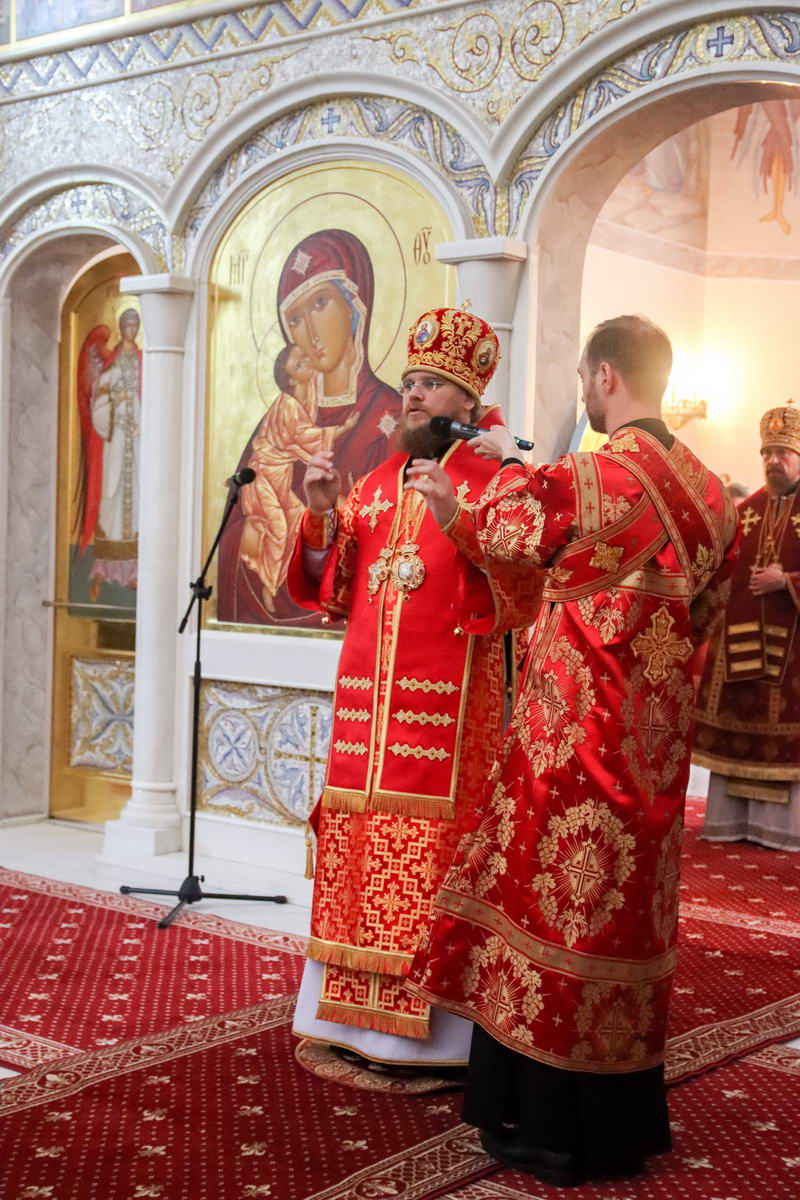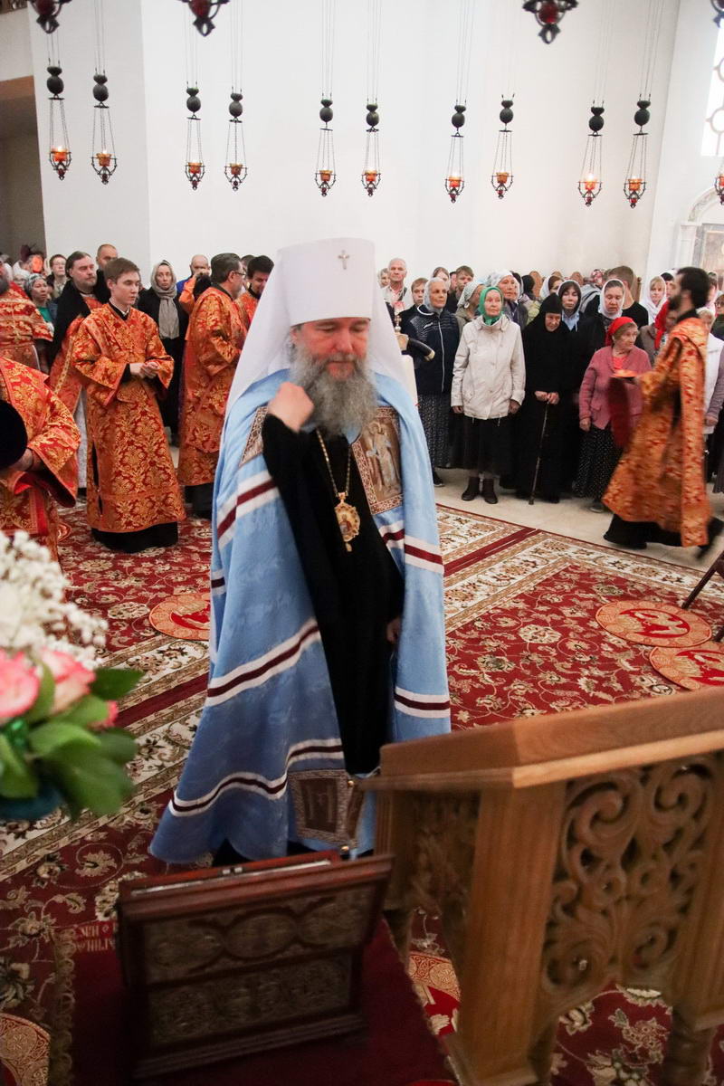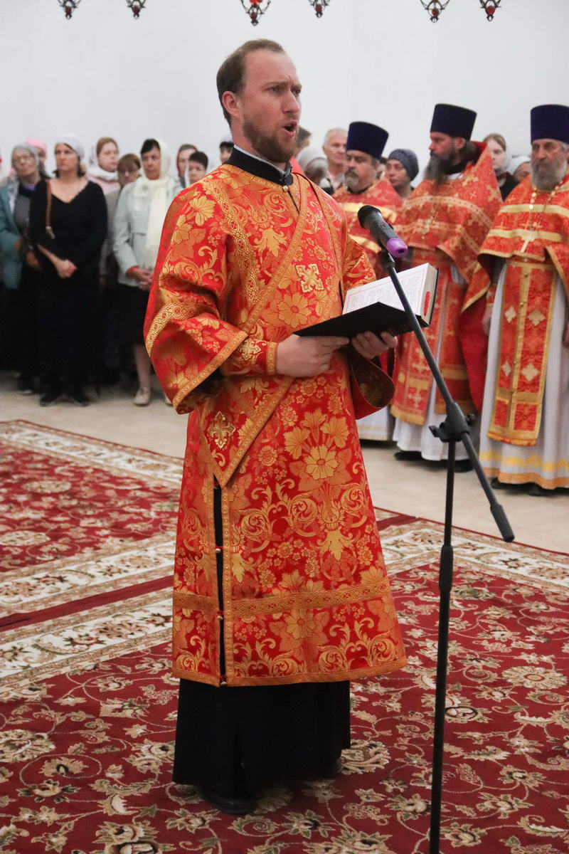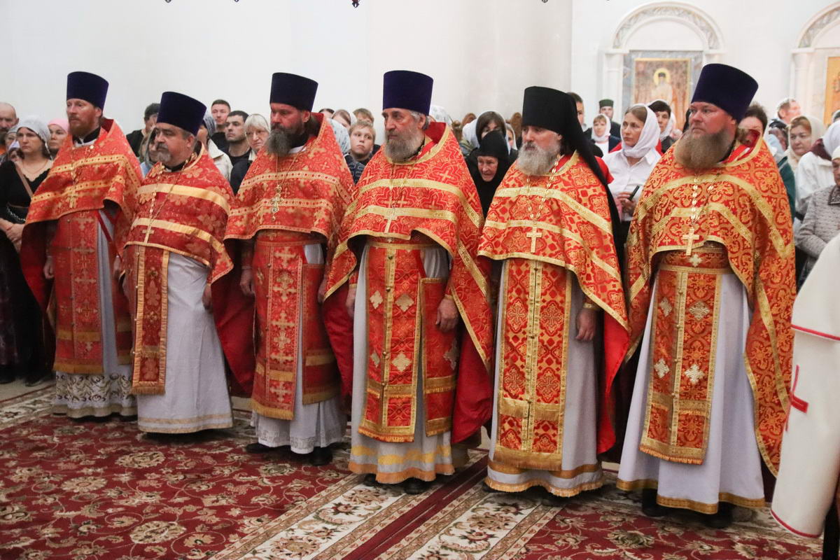 Богослужение возглавил митрополит Екатеринбургский и Верхотурский Евгений, которому сослужил митрополит Челябинский и Миасский Алексий, митрополит Волгоградский и Камышинский Феодор, епископ Нижнетагильский и Невьянский Феодосий, епископ Серовский и Краснотурьинский Феогност, епископ Каменский и Камышловский Мефодий, епископ Алапаевский и Ирбитский Сергий, а также секретарь Екатеринбургской епархии митрофорный протоиерей Николай Ладюк, настоятель обители игумен Моисей (Пилатс) и многочисленное духовенство Екатеринбургской митрополии.