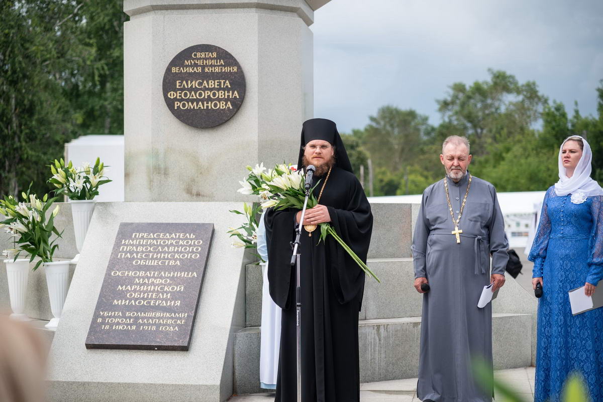 У памятника Великой княгине Елисавете состоялось торжественное открытие дней благотворительности и милосердия "Белый цветок". О важности и значимости самоотверженного служения Великой княгини и её мученического подвига на открытии рассказали глава МО город Алапаевск Денис Анатольевич Толмачёв председатель наблюдательного совета "Елисаветинско-Сергиевского просветительского общества" Анна Витальевна Громова, епископ Алапаевский и Ирбитский Сергий, вице-президент РОО «Уральское землячество» Ирина Вячеславовна Куньшина, директор Свердловского областного медицинского колледжа Ирина Анатольевна Лёвина.