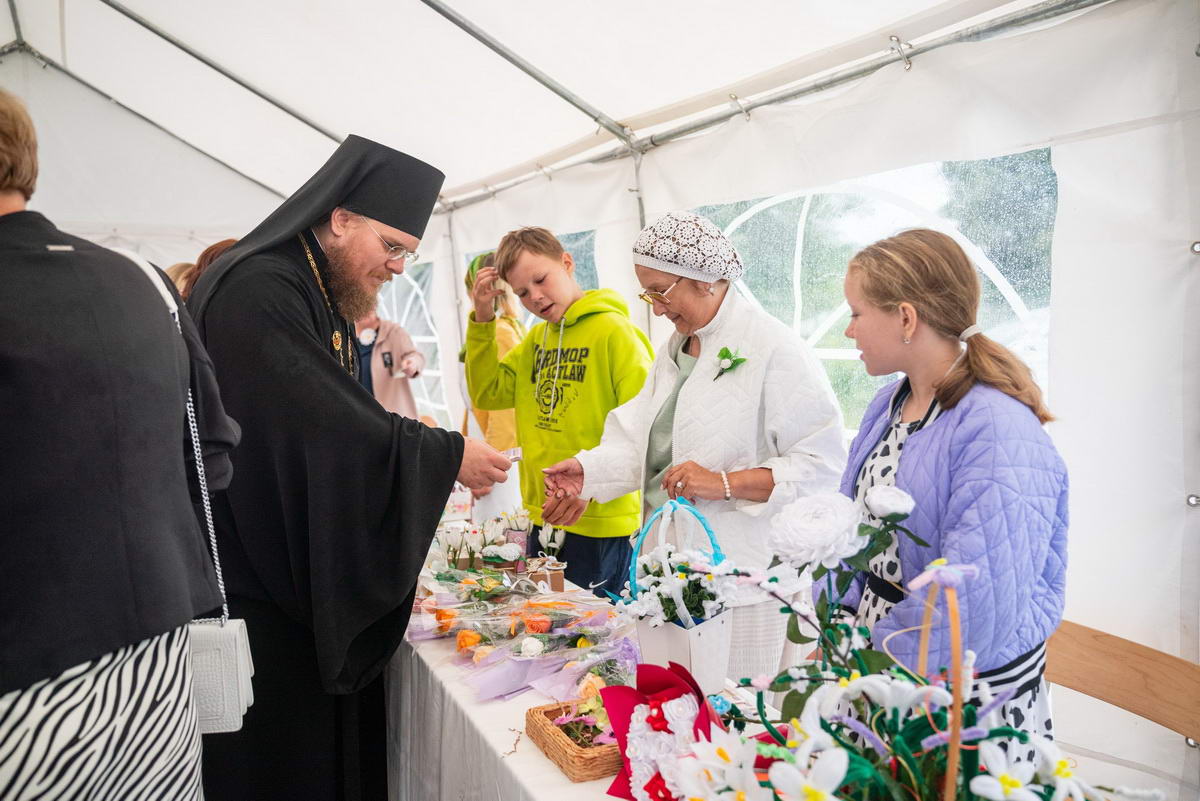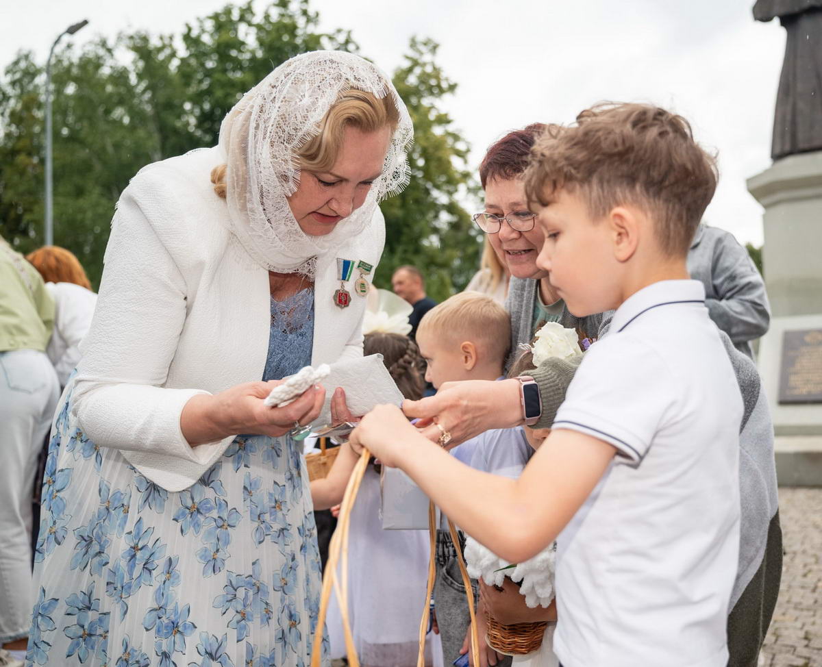 По окончании приветственных слов для чествования были приглашены семьи, участников СВО. Завершилось торжественное открытие благотворительной ярмарки «Белый цветок» традиционным обходом палаток, где разместились торговые ряды и мастер-классы для всех желающих.