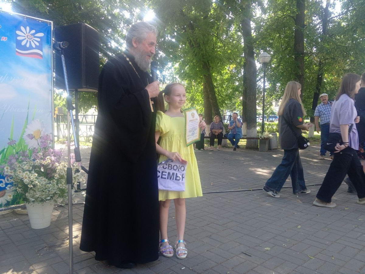 Фестиваль открыл благочинный Артемовского благочиния протоиерей Николай Трушников. В своем приветственном слове отец Николай отметил, "что семья - это показатель здоровья или нездоровья общества. Если между мужем и женой вражда, то от этого страдают дома, города, государства; начинаются войны и раздор. Именно в семье происходят показательные моменты духовно-нравственного состояния. Если мы не в силах терпеть какие-то недостатки самого близкого человека, то как мы можем терпеть недостатки окружающих людей. Нам нужно учиться любви, терпению, смирению, а семья как никакой другой институт дает нам такие возможности. Цель семьи даже не деторождение. Цель семьи - вхождение в Царствие Небесное, как святые Петр и Феврония, которые своим супружеством, своей смертью подтвердили эти христианские добродетели. Любовь не умирает, любовь не перестаёт никогда! С праздником!"