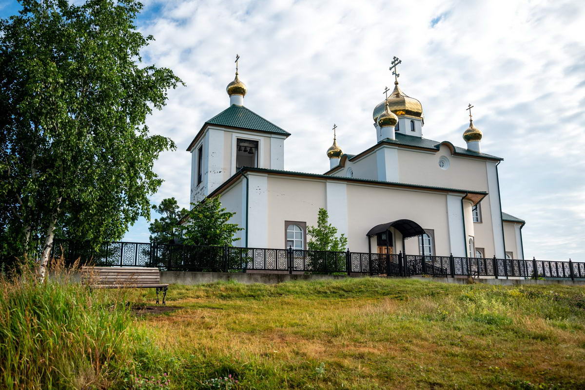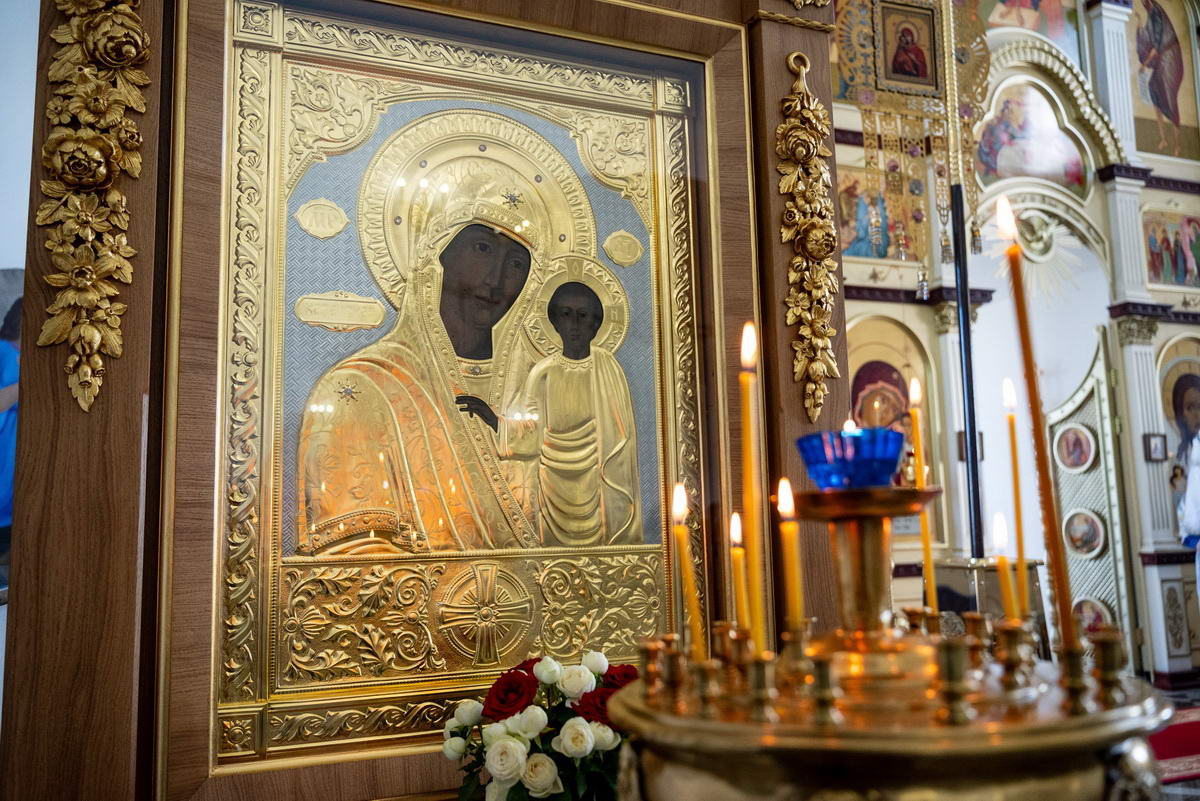 Напомним, что каменный пятиглавый храм построен в 1800 году. Два придела главный: освящен в честь Казанской иконы Божьей Матери, и второй во имя святого Архангела Михаила. В 1929 году храм закрыли, колокольню разобрали. Большой ущерб храму принёс пожар в 1970 году. С 2005 года начались воcстановительные работы. С января 2006 года службы проводились в правом приделе во имя Архангела Михаила.