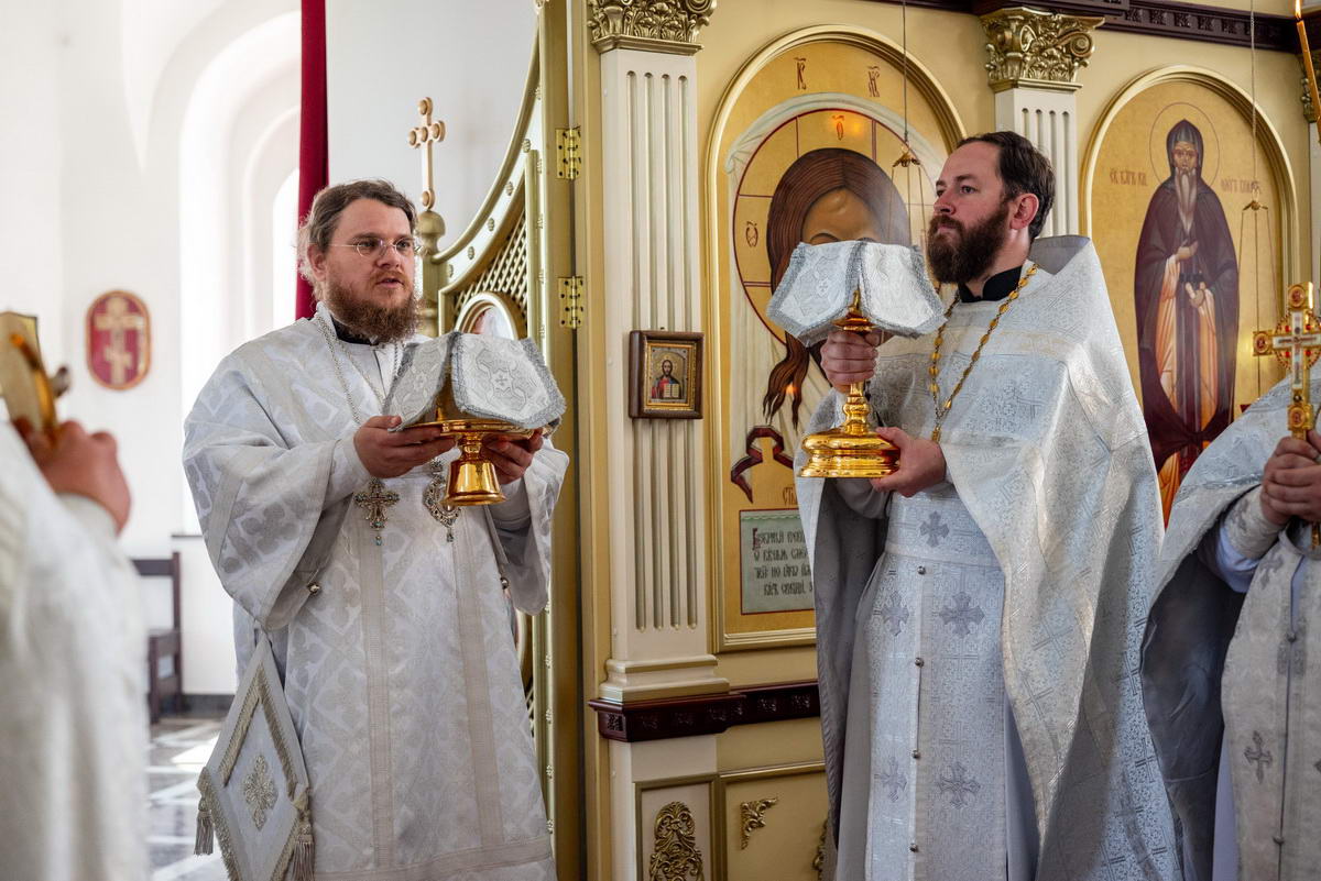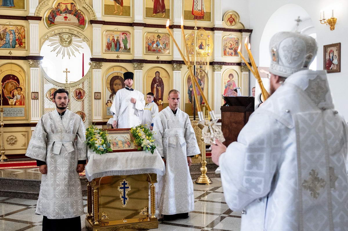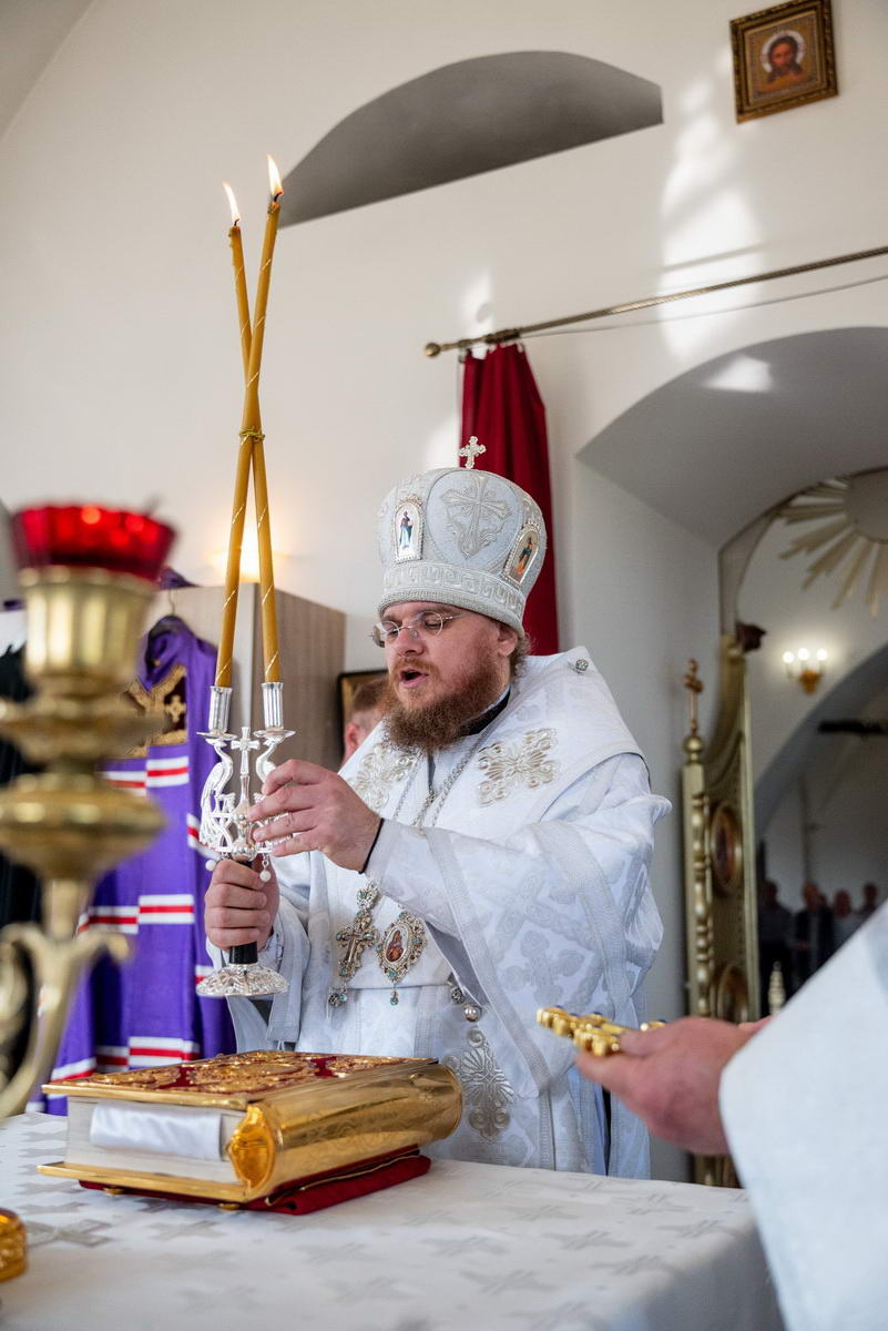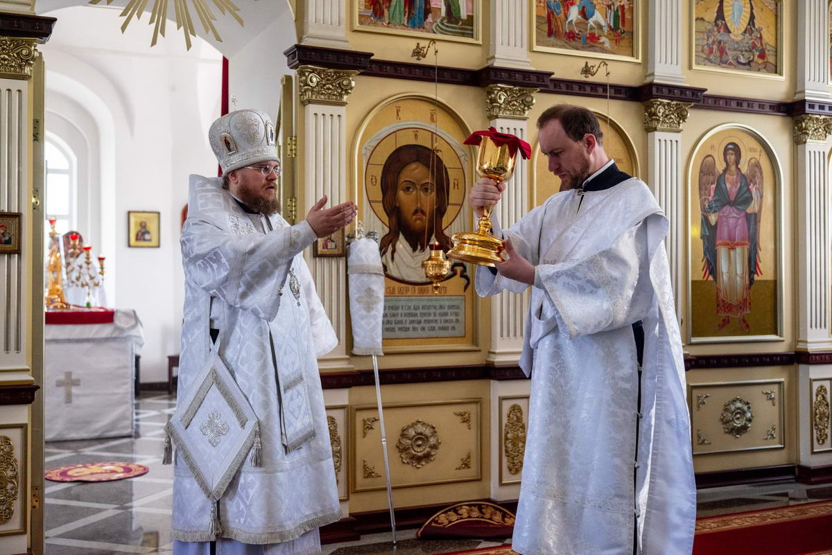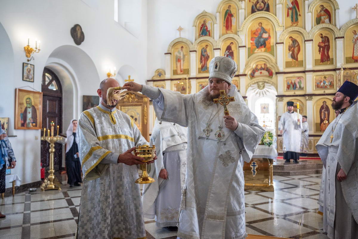 По окончании литургии епископ Сергий обратился к прихожанам с архипастырским словом. "Поздравляю вас с освящением этого прекрасного храма. Особенно всех потрудившихся в деле его восстановления. Многие знают наверняка, как этот храм находился в руинах, и как прекрасно выглядит сейчас. Всё это стало возможным благодаря меценатам и вам, кто жертвовал по своей возможности. В чине освящения храма есть такие слова: "Сотво́ршым же зда́ние сие́ и хра́ма освяще́ние, по любви́ к Тебе́ Бо́гу тща́тельно, оставле́ние согреше́ний пода́ждь, да́руй и́м я́же ко спасе́нию проше́ния". И Церковь будет молиться до конца времен за этих людей, которые постарались что-то сделать для восстановления храма", - отметил Владыка Сергий.