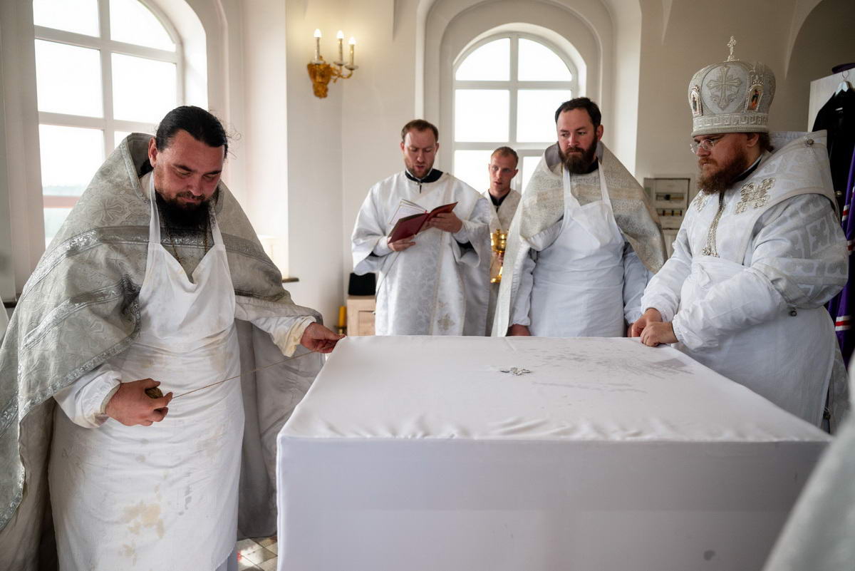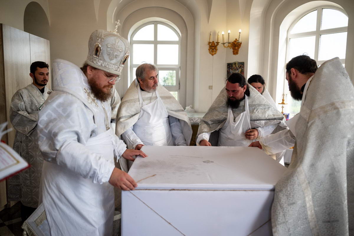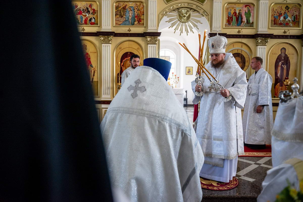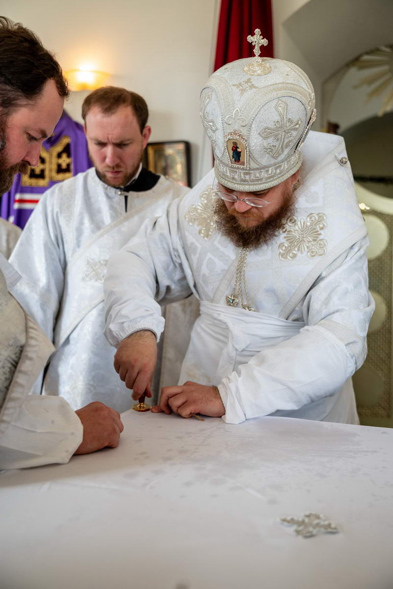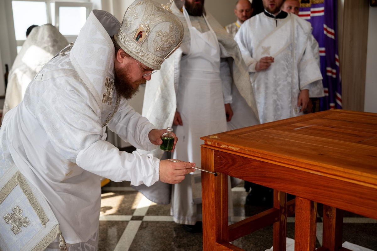 По окончании литургии епископ Сергий обратился к прихожанам с архипастырским словом. "Поздравляю вас с освящением этого прекрасного храма. Особенно всех потрудившихся в деле его восстановления. Многие знают наверняка, как этот храм находился в руинах, и как прекрасно выглядит сейчас. Всё это стало возможным благодаря меценатам и вам, кто жертвовал по своей возможности. В чине освящения храма есть такие слова: "Сотво́ршым же зда́ние сие́ и хра́ма освяще́ние, по любви́ к Тебе́ Бо́гу тща́тельно, оставле́ние согреше́ний пода́ждь, да́руй и́м я́же ко спасе́нию проше́ния". И Церковь будет молиться до конца времен за этих людей, которые постарались что-то сделать для восстановления храма", - отметил Владыка Сергий.