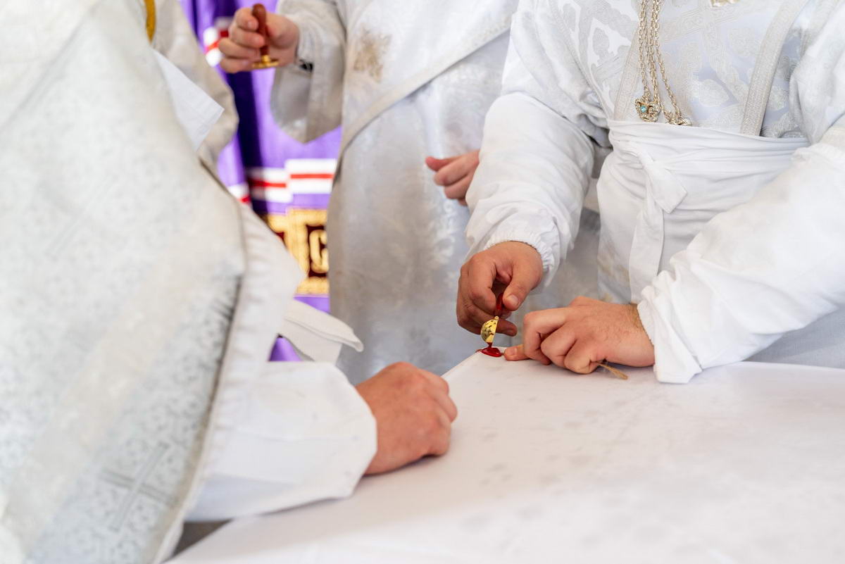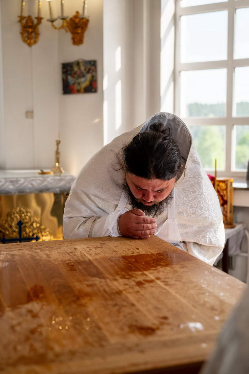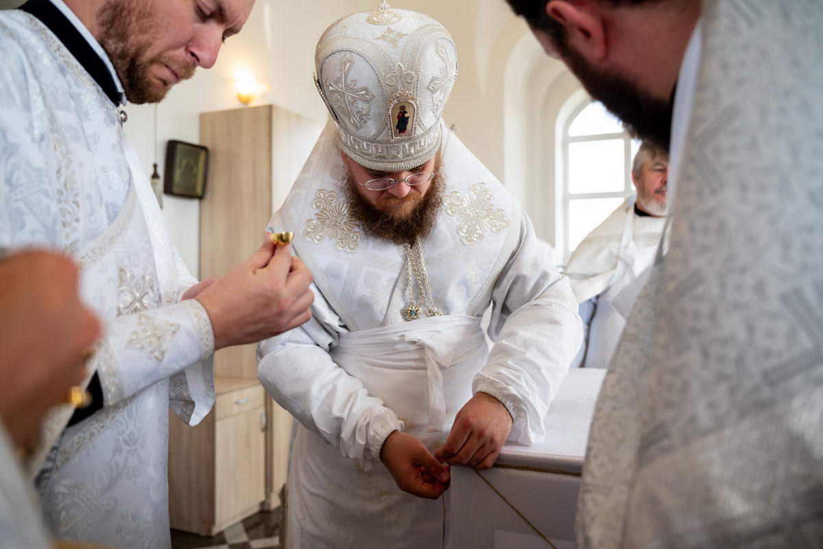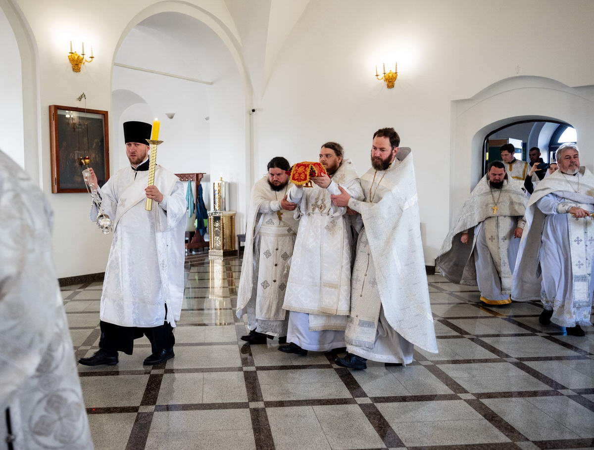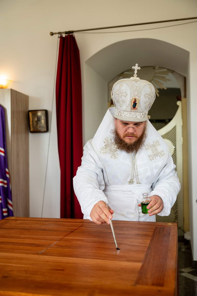 По окончании литургии епископ Сергий обратился к прихожанам с архипастырским словом. "Поздравляю вас с освящением этого прекрасного храма. Особенно всех потрудившихся в деле его восстановления. Многие знают наверняка, как этот храм находился в руинах, и как прекрасно выглядит сейчас. Всё это стало возможным благодаря меценатам и вам, кто жертвовал по своей возможности. В чине освящения храма есть такие слова: "Сотво́ршым же зда́ние сие́ и хра́ма освяще́ние, по любви́ к Тебе́ Бо́гу тща́тельно, оставле́ние согреше́ний пода́ждь, да́руй и́м я́же ко спасе́нию проше́ния". И Церковь будет молиться до конца времен за этих людей, которые постарались что-то сделать для восстановления храма", - отметил Владыка Сергий.