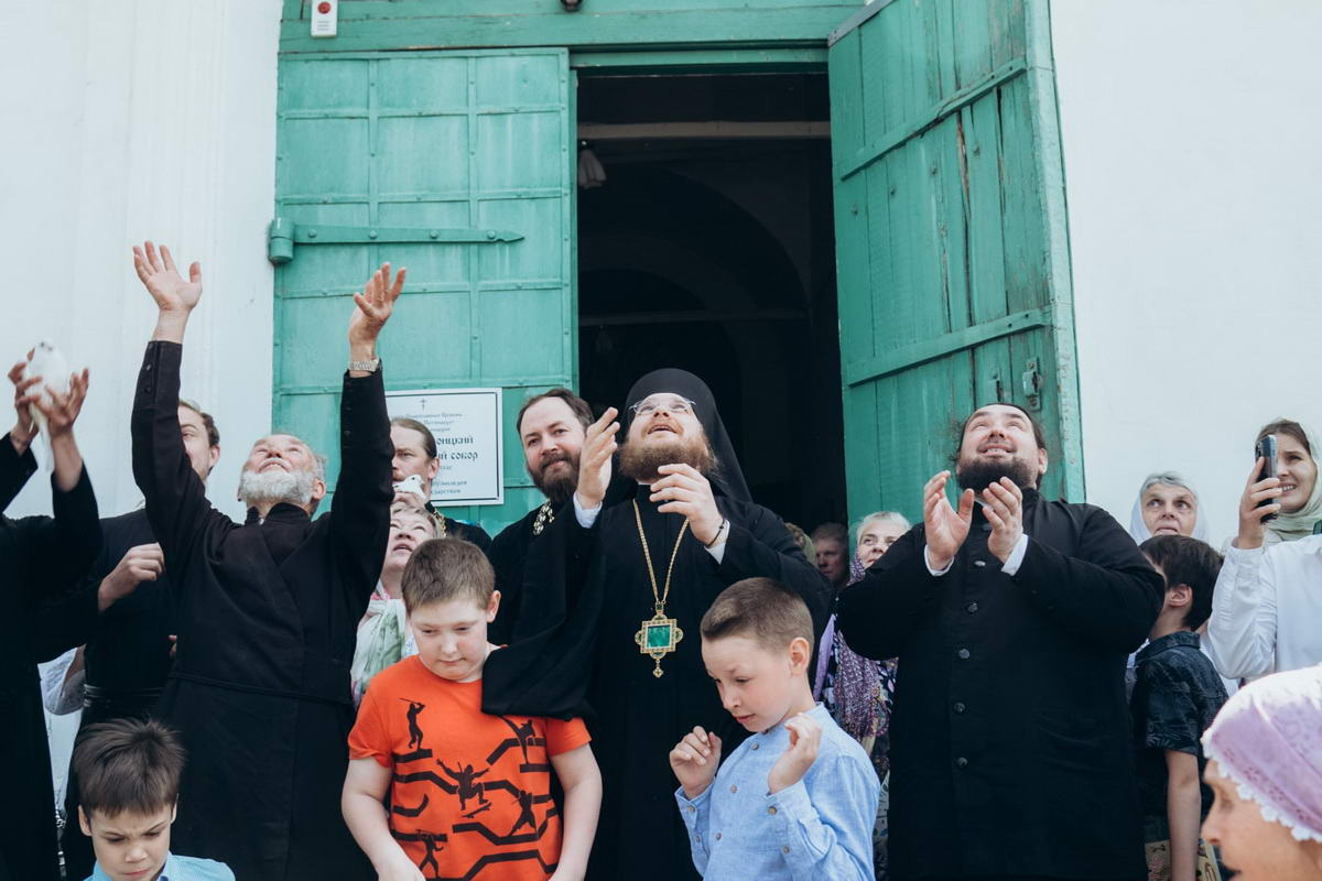 По сложившейся традиции, по окончании благодарственных молитв, все прихожане вышли на улицу, чтобы выпустить в небо белых голубей. Благодарим за предоставленную возможность Михаила Земерова.