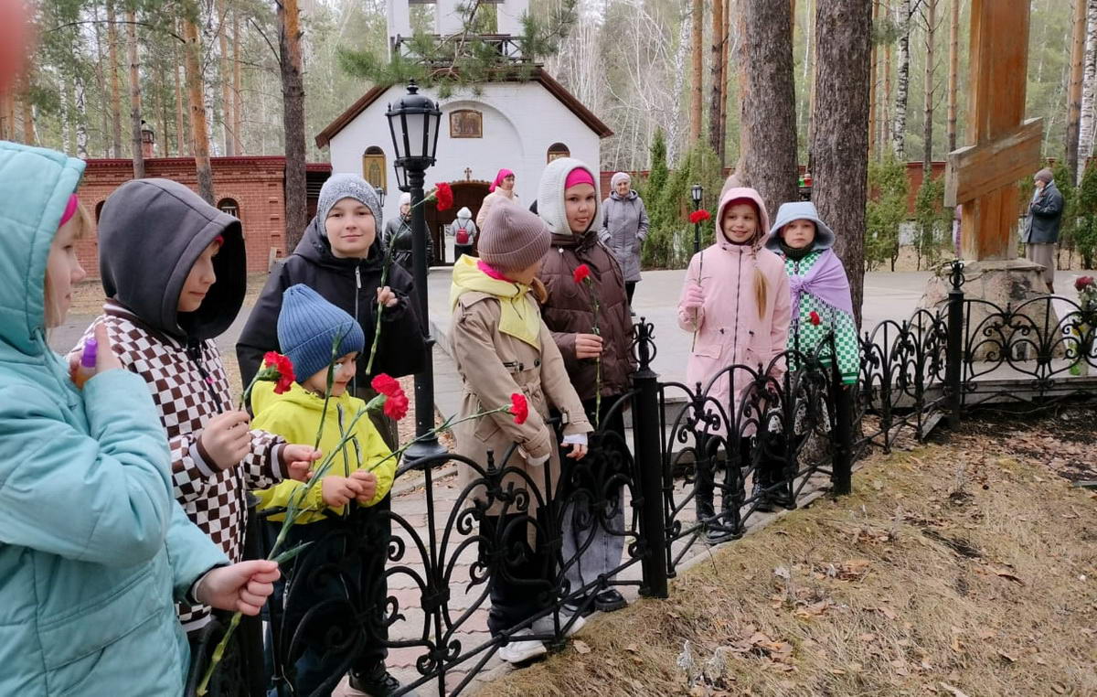 Попрощавшись с отцом Василиском, мы направились на место гибели святых преподобномучениц Великой княгини Елисаветы Феодоровны, инокини Варвары и князей Дома Романовых. С благоговением подходили дети и взрослые к Поклонному Кресту, прошли крестным ходом вокруг шахты с пением тропаря Пасхи, возложили гвоздики.