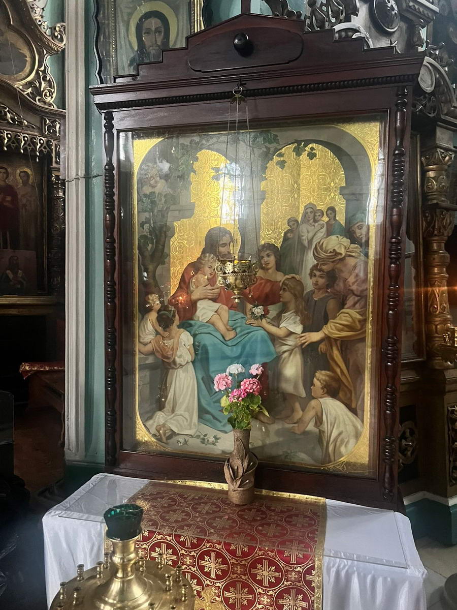 Исповедались и причастились Святых Христовых Таин на Божественной литургии в храме во имя Феодоровской иконы Божией Матери, после чего схимонах Василиск побеседовал с нами о наступающей Неделе Жен-мироносиц, поздравил девочек и женщин с православным женским праздником, сфотографировался с нами на память. А затем проводил в храм в честь Собора новомучеников и исповедников Российских, рассказал о святой преподобномученице Елисавете Феодоровне и святынях храма.