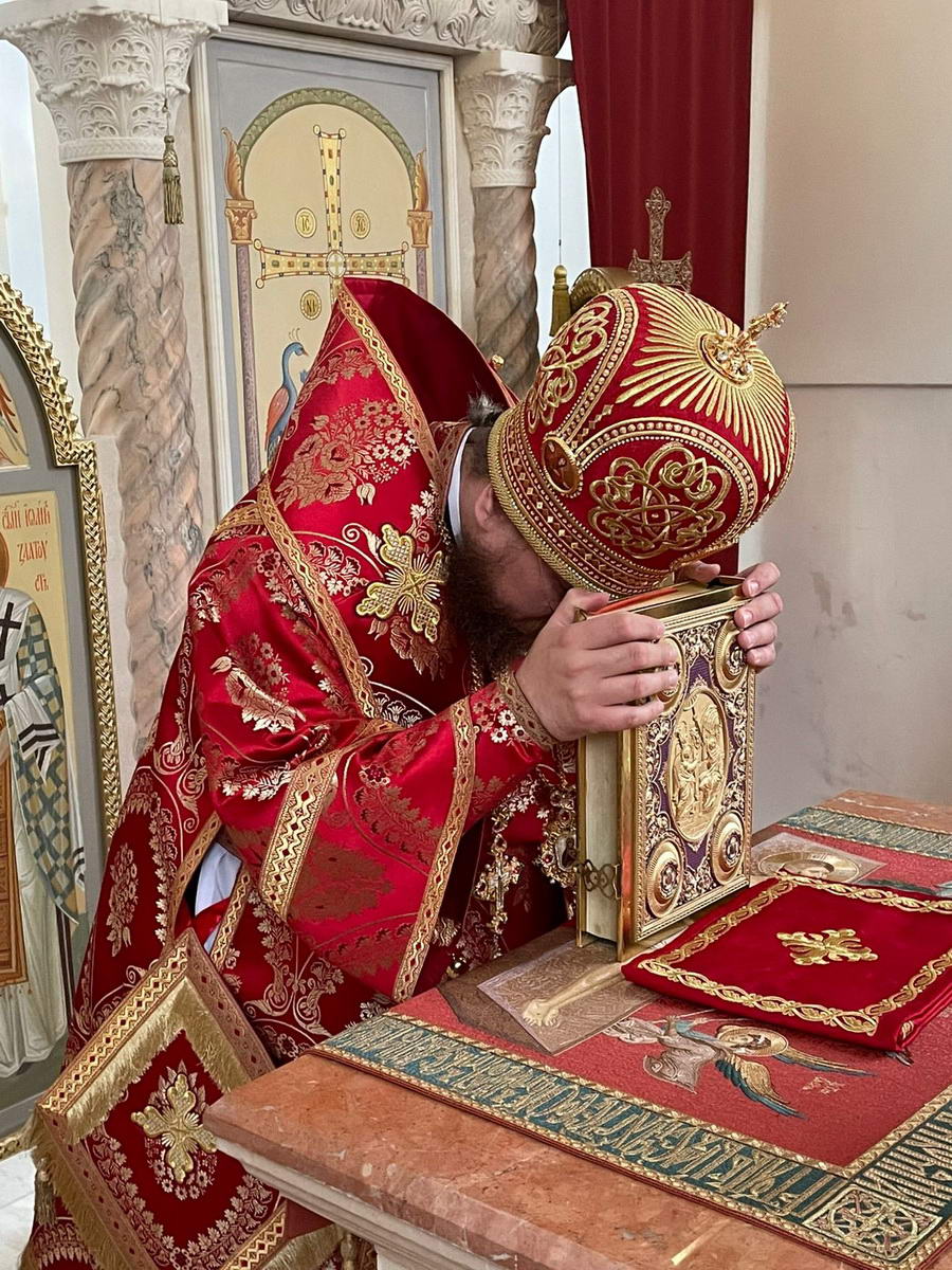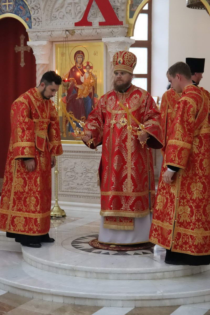 По окончании литургии епископ Сергий поблагодарил хор, духовенство и мирян за совместную молитву в этот праздничный день, преподав каждому своё архипастырское благословение.