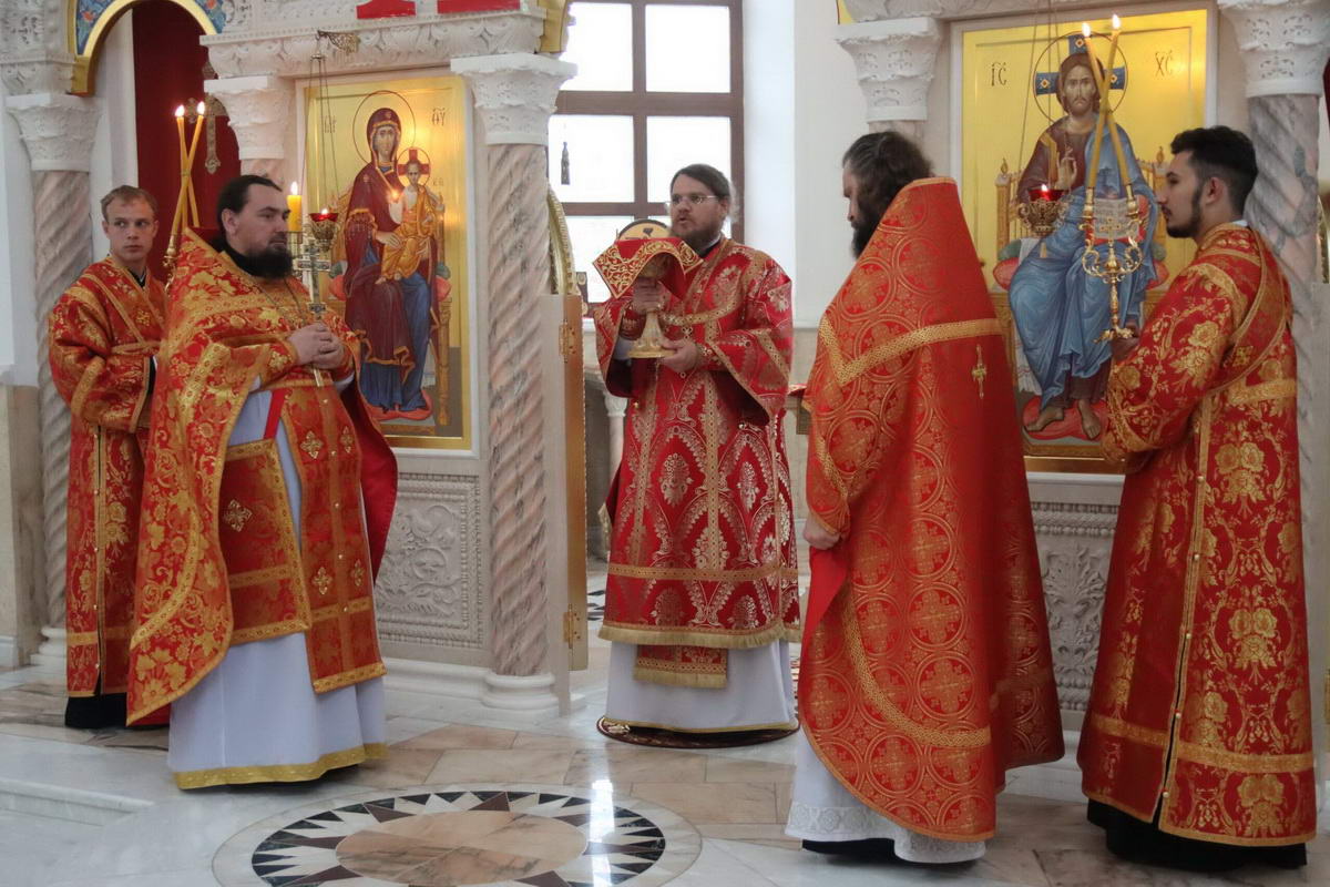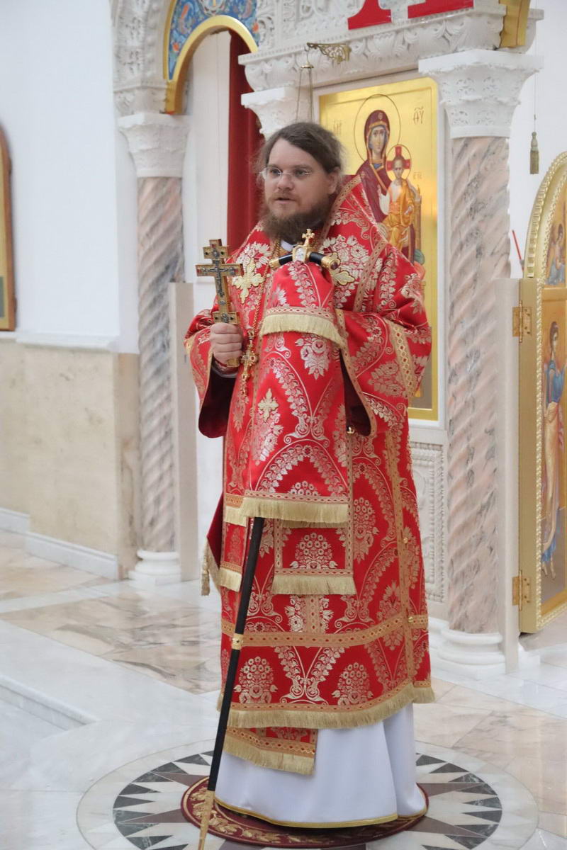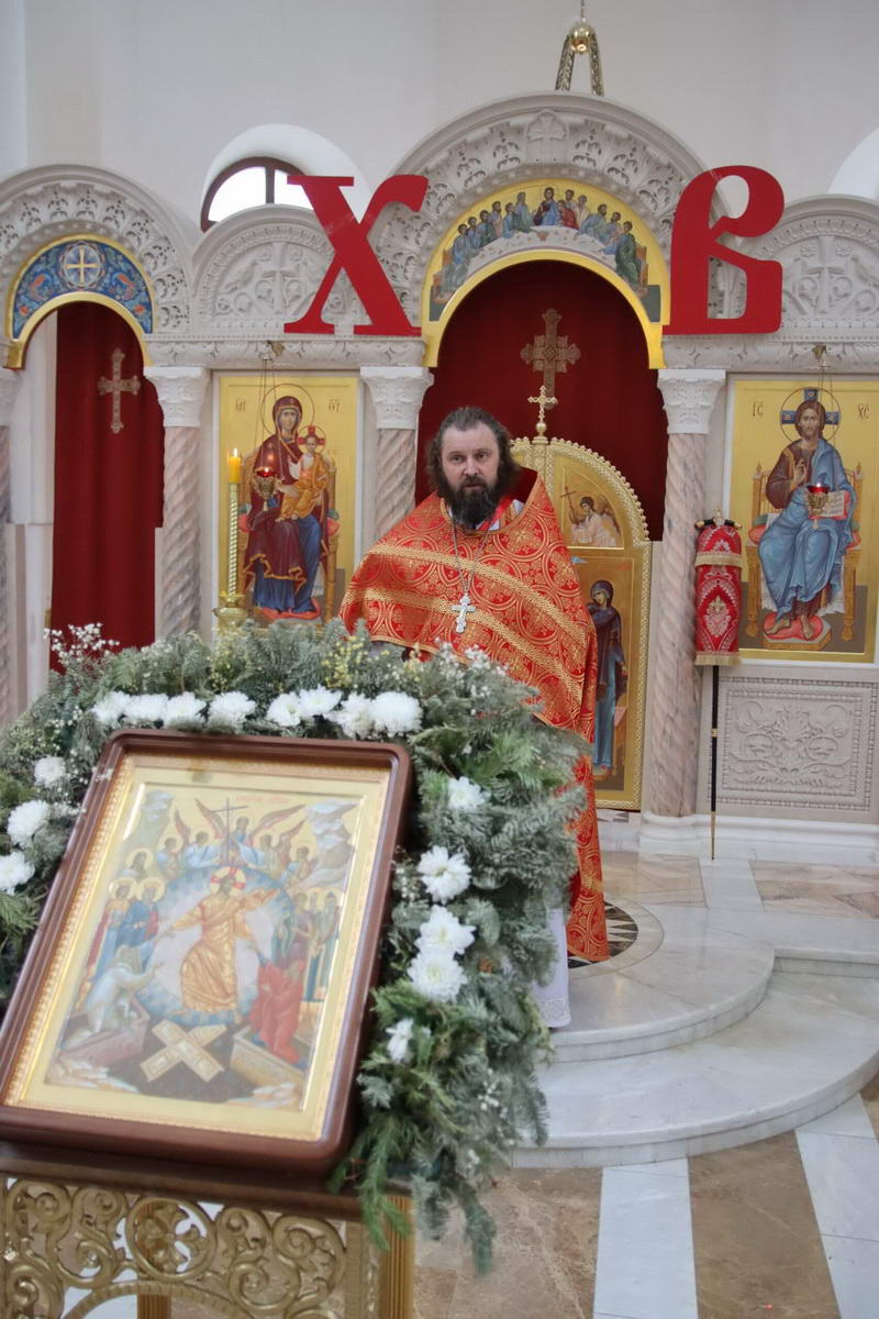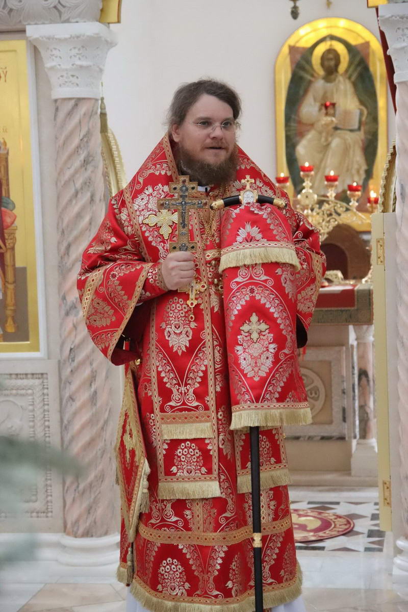 По запричастном стихе проповедь произнес настоятель храма иерей Владислав Першин, который рассказал об удивительной жизни апостола и евангелиста Иоанна Богослова.