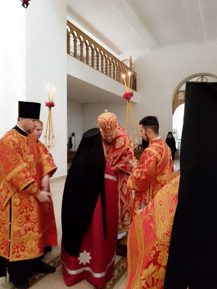 За богослужением права ношения наперсного креста был удостоен насельник мужского монастыря Новомучеников и исповедников Церкви Русской иеромонах Варсонофий (Молчанов).