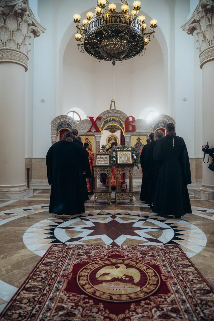Богослужебные песнопения исполнил хор под управлением регента храма Дарьи Капленко-Летняковой.