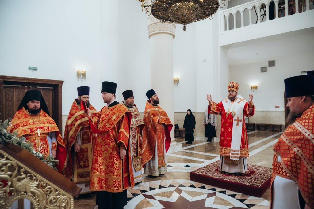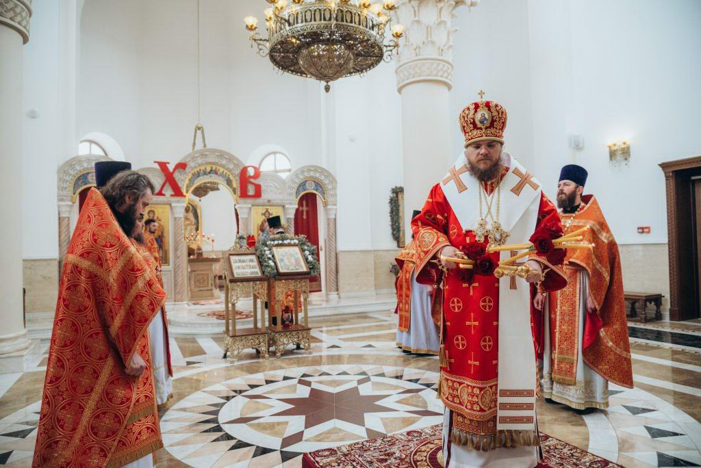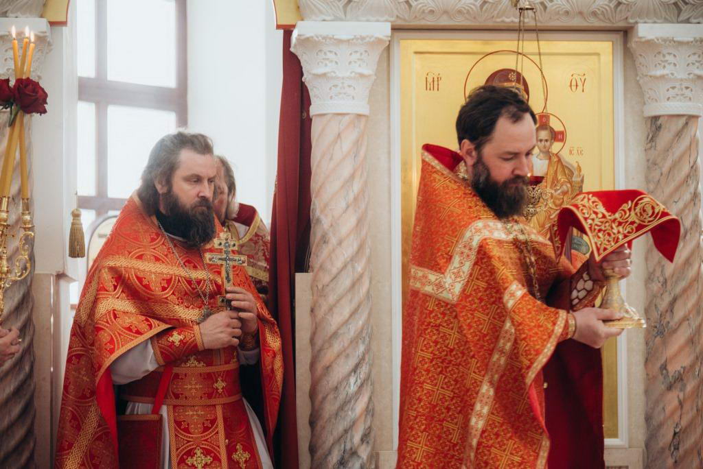За литургией были вознесены сугубые прошение и молитва о мире на Святой Руси.