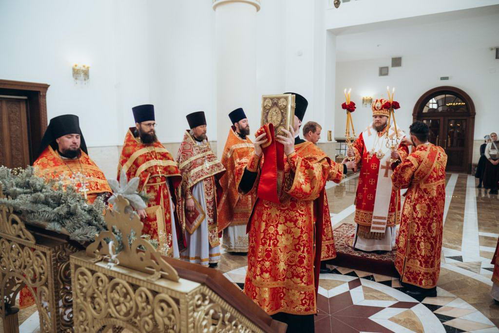 В завершение литургии было совершено славление святым и возглашено многолетие Святейшему Патриарху Московскому и всея Руси Кириллу, который в этот день празднует своё тезоименитство.