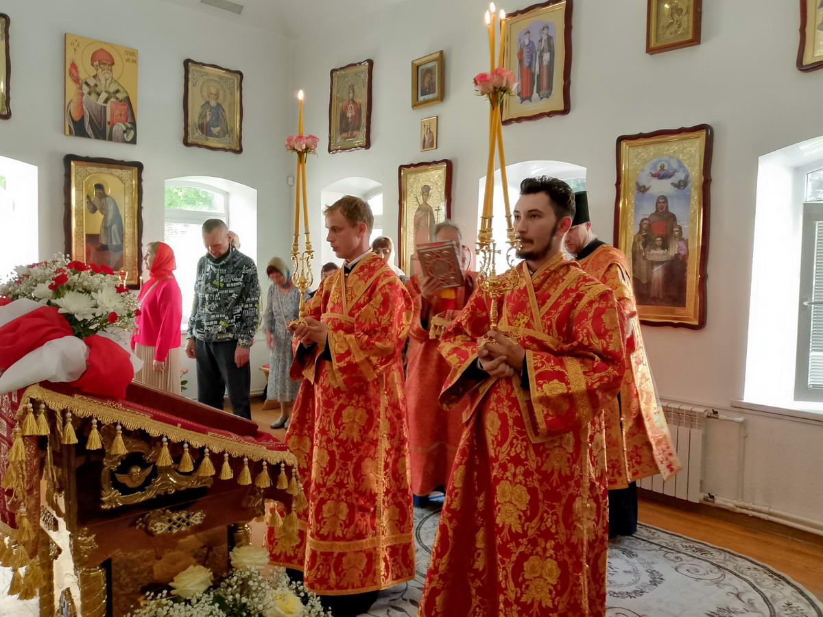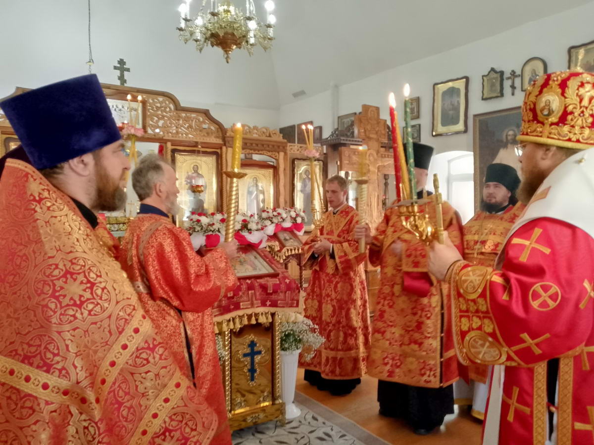 28 мая, в день отдания праздника Пасхи, в храме во имя св. прав. Иоанна Кронштадтского г. Реж состоялось архиерейское богослужение. Божественную литургию возглавил епископ Алапаевский и Ирбитский Сергий, которому сослужили: благочинный Режевского округа, настоятель храма иерей Николай Азанов, настоятель храма во имя блж. Ксении Петербургской г. Реж протоиерей Борис Бароев, настоятель храма во имя иконы Божией Матери г. Артемовский иерей Андрей Малашенко, настоятель храма во имя св. Иоанна Предтечи г. Реж иерей Роман Конков, руководитель службы протокола Алапаевской епархии иеромонах Стефан (Тонков), а также клирики Алапаевской епархии иеродиакон Дионисий (Матросов) и диакон Владимир Коркодинов.